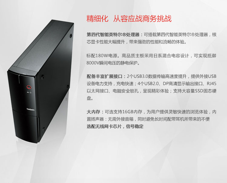 • 聯想(ThinkCentre)E73S 小機箱臺式電腦 (I3-4160T 4GB 500GB 核顯 )+19.5英寸顯示器