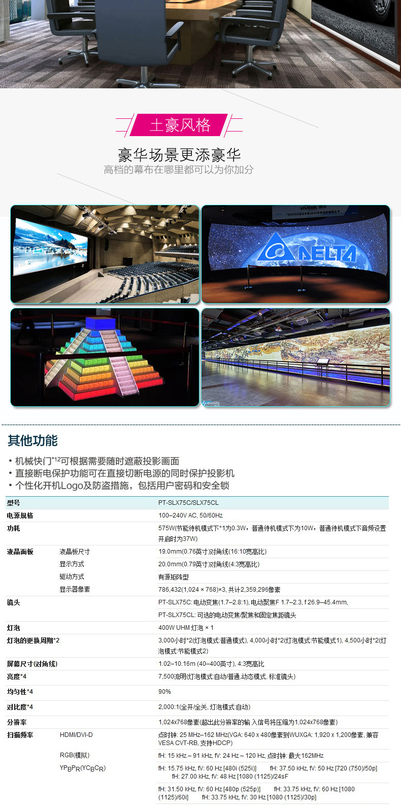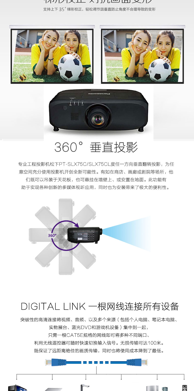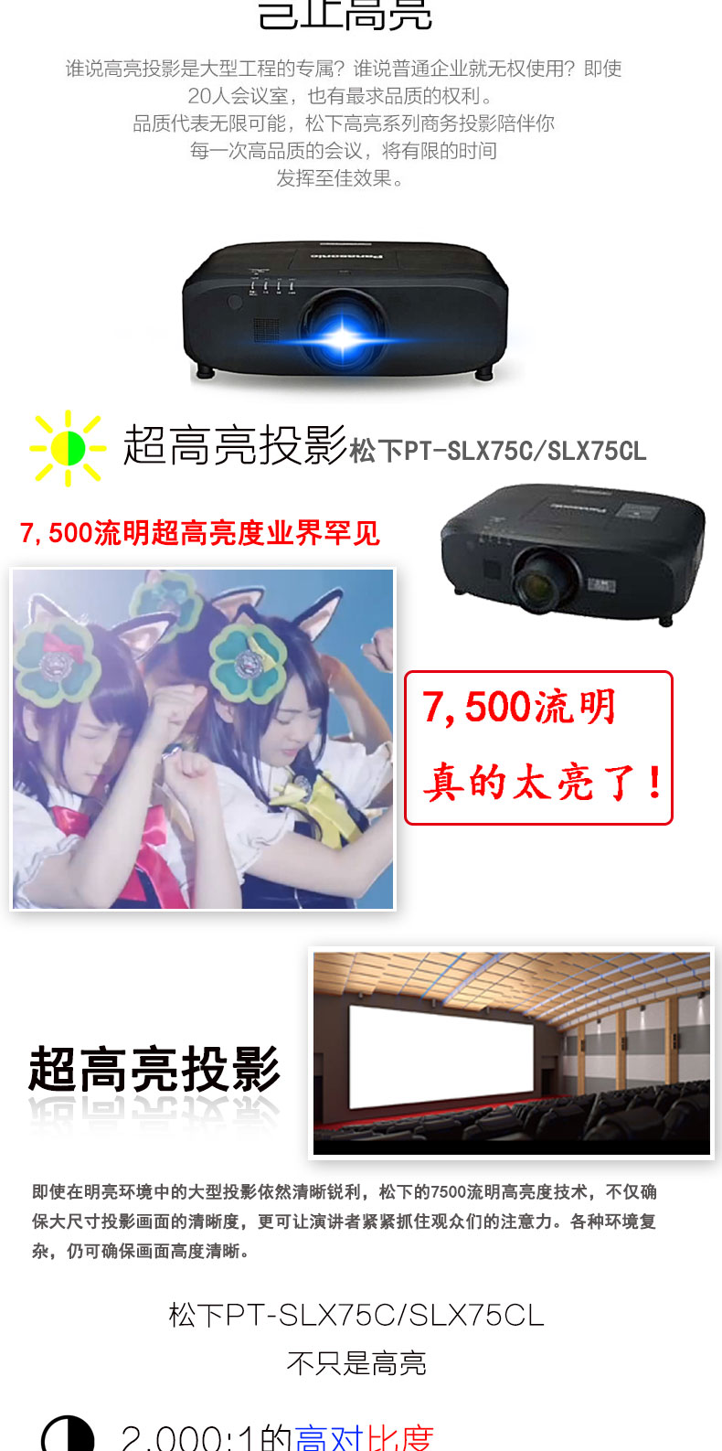 松下 PT-SLX75C 投影機 主流工程型/7500流明/1024×768/2000:1